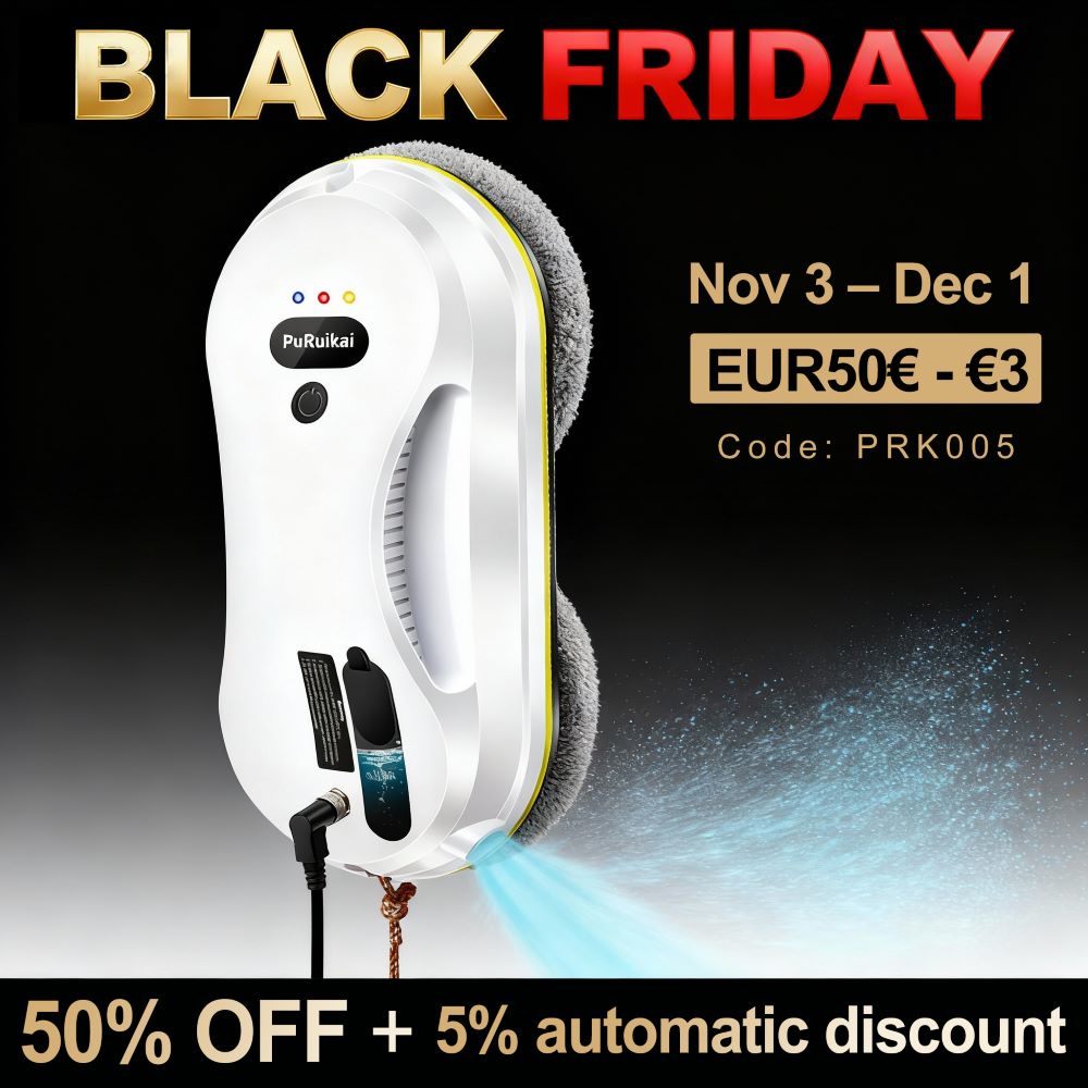 PuRuiKai Window Cleaning Robot, Auto-Spray Smart Window Cleaner with Triple Safety System, Smart Navigation, Remote Control, for All Smooth Surfaces, with 10 Rags